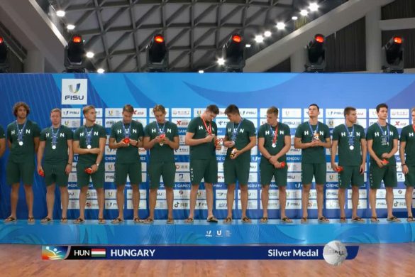 Az ezüstérmek átadása (HUN-ITA Universiade-döntő, 2023.08.08.)