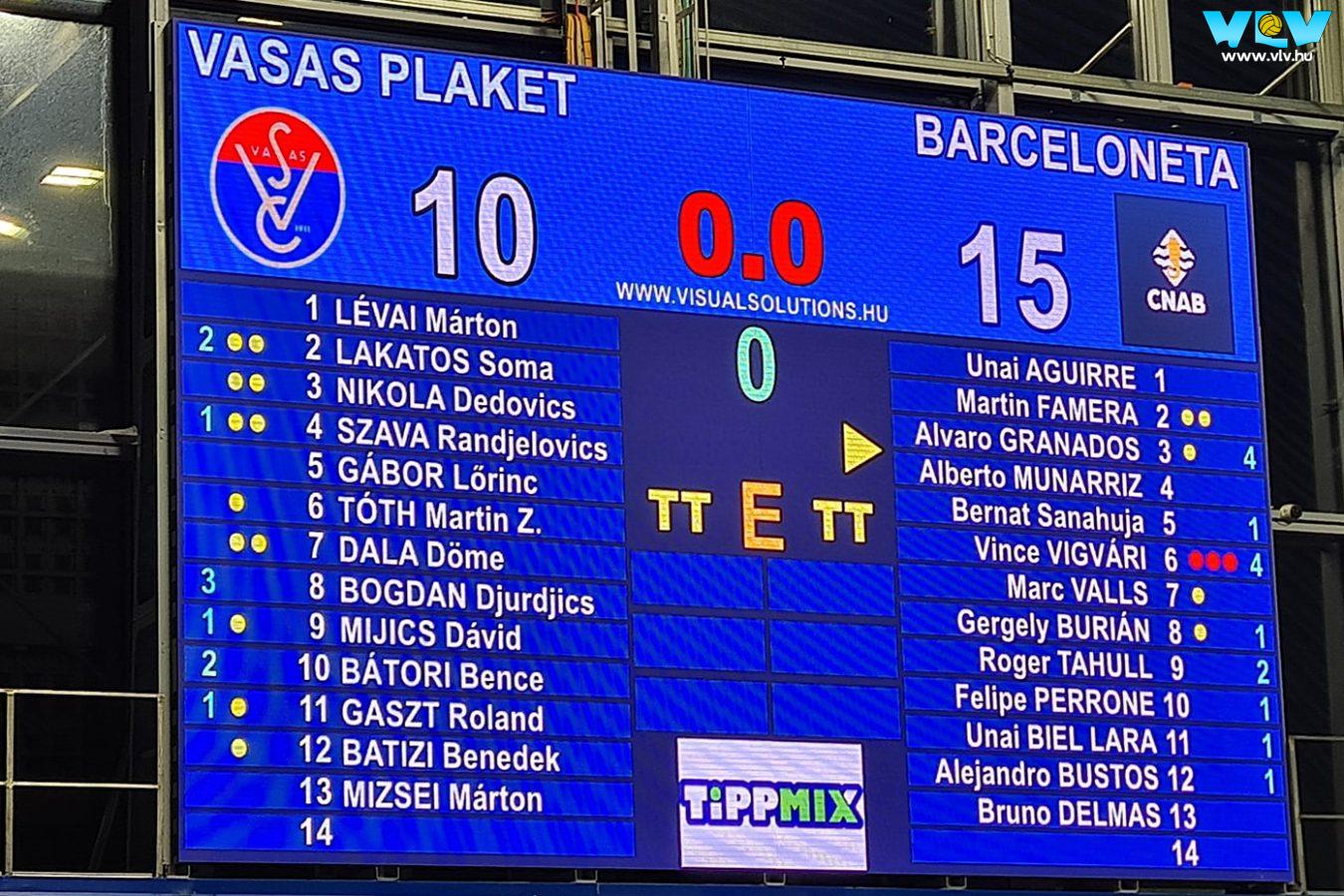 A kinti vesszőfutáshoz képest előbbre lépett a Vasas, de így is ötgólos vereség lett a vége a CNA Barceloneta elleni meccsnek. Eredmények, a budapesti mérkőzés góljainak elérhetősége, Burián Gergely, Vigvári Vince, Lakatos Soma és Bátori Bence nyilatkozata, később vlv-fotók: