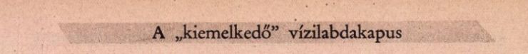 Peterdi Pál ezúttal nem humorizált. Az akkor 35 éves Jeney László példáján keresztül elemezte a kapusok különleges feladatának, a vízből kiemelkedésnek a hátterét, a képesség elsajátításának módszereit. Meglehet, hogy a Sport és Tudomány folyóiratban 1958-ban(!) megjelent cikkből még a mai kapusok is tanulhatnak. Forrásunk most is az Arcanum Újságok.