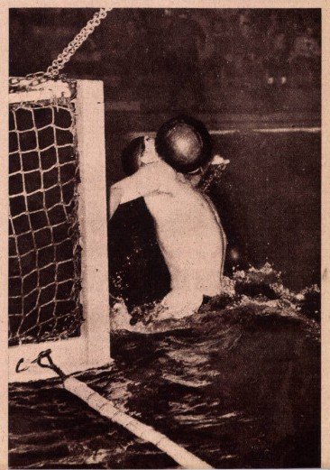 Nem túlságosan nehéz rejtvény, a vízilabda-mérkőzések látogatói még erről az arcanincs felvételről is könnyen megismerik Jeney Lászlónak, az FTC kétszeres olimpiai bajnok kapusának elegáns mimikáját. A Magyar Népköztársasági Kupa döntő mérkőzésein Jeney újra a mezőny legjobb Cerberusának bizonyult, jó néhány “hihetetlen” védése is akadt.